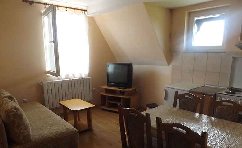 Apartman br.4 je predviđen za boravak do 5 odraslih osoba. Apartman poseduje dnevni boravak sa kuhinjom i trpezarijskim stolom, spavaću sobu i kupatilo. U dnevnom boravku nalazi se klik-klak ležaj, a u spavaćoj sobi francuski krevet. Površina apartmana je oko 28,27m2.